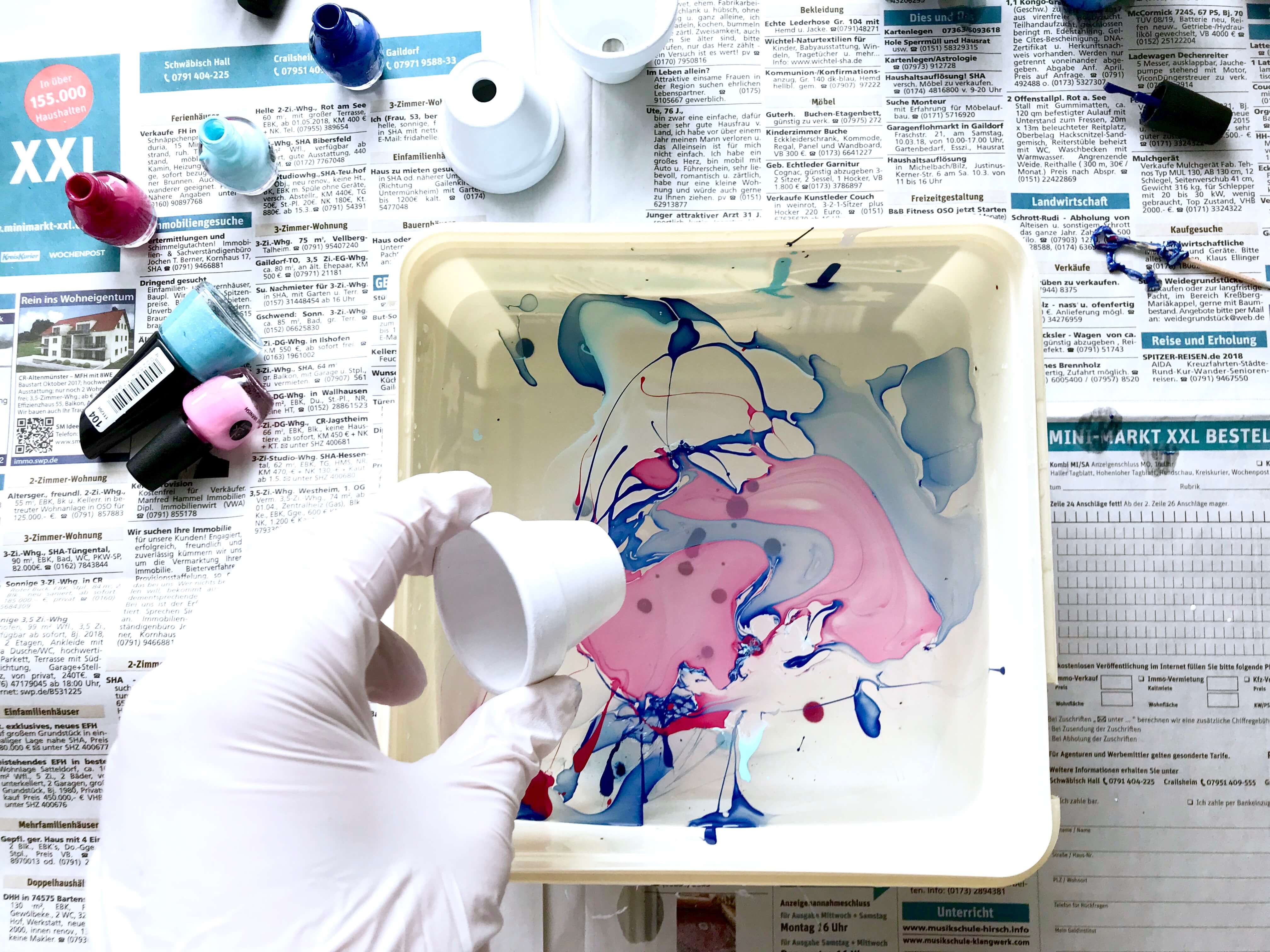DIY: Marmorierte Eierbecher aus Mini-Tontöpfen zu Ostern
