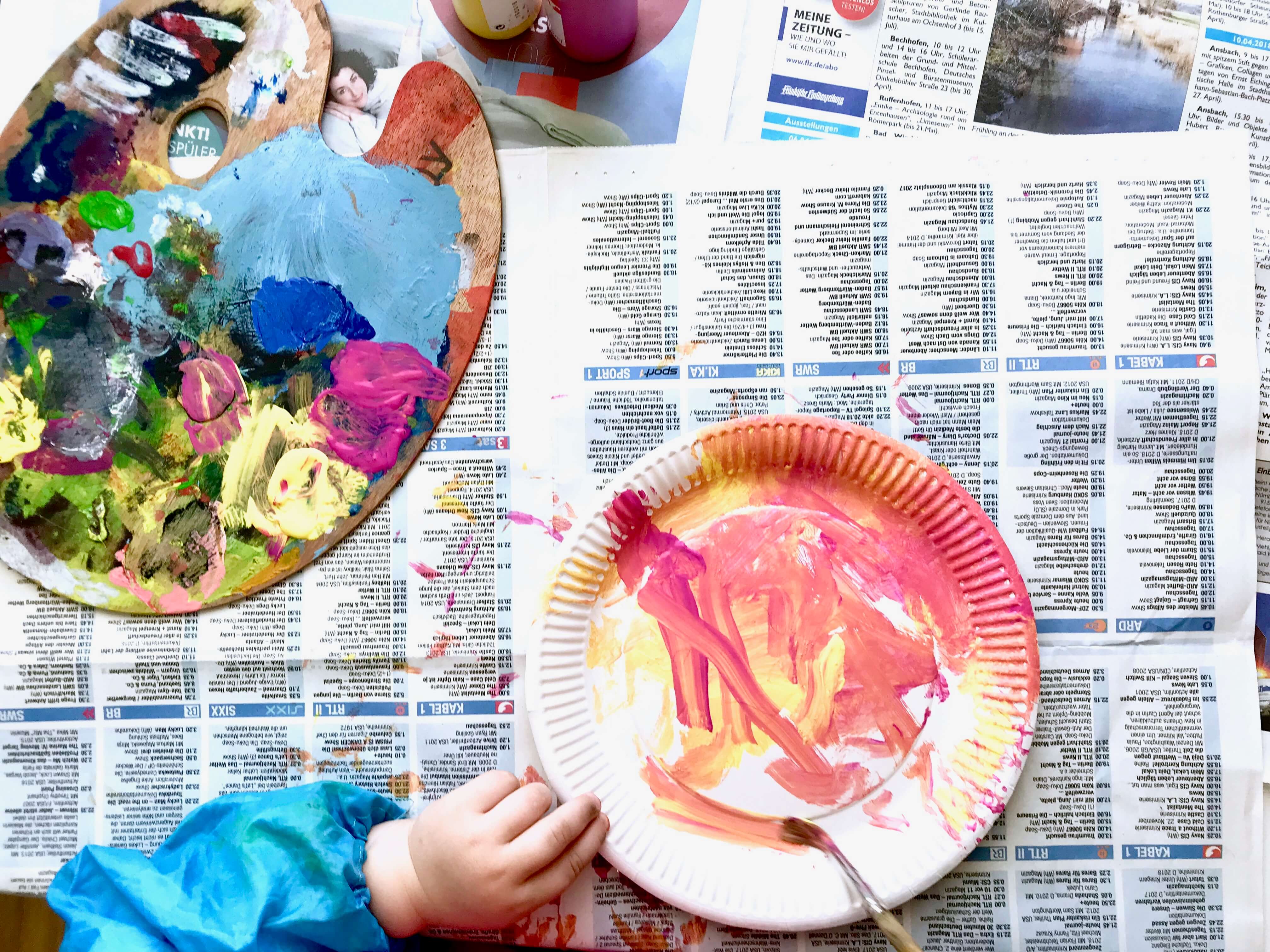 Muttertagsbastelei mit Kleinkind – Pappteller-Fotoblumen