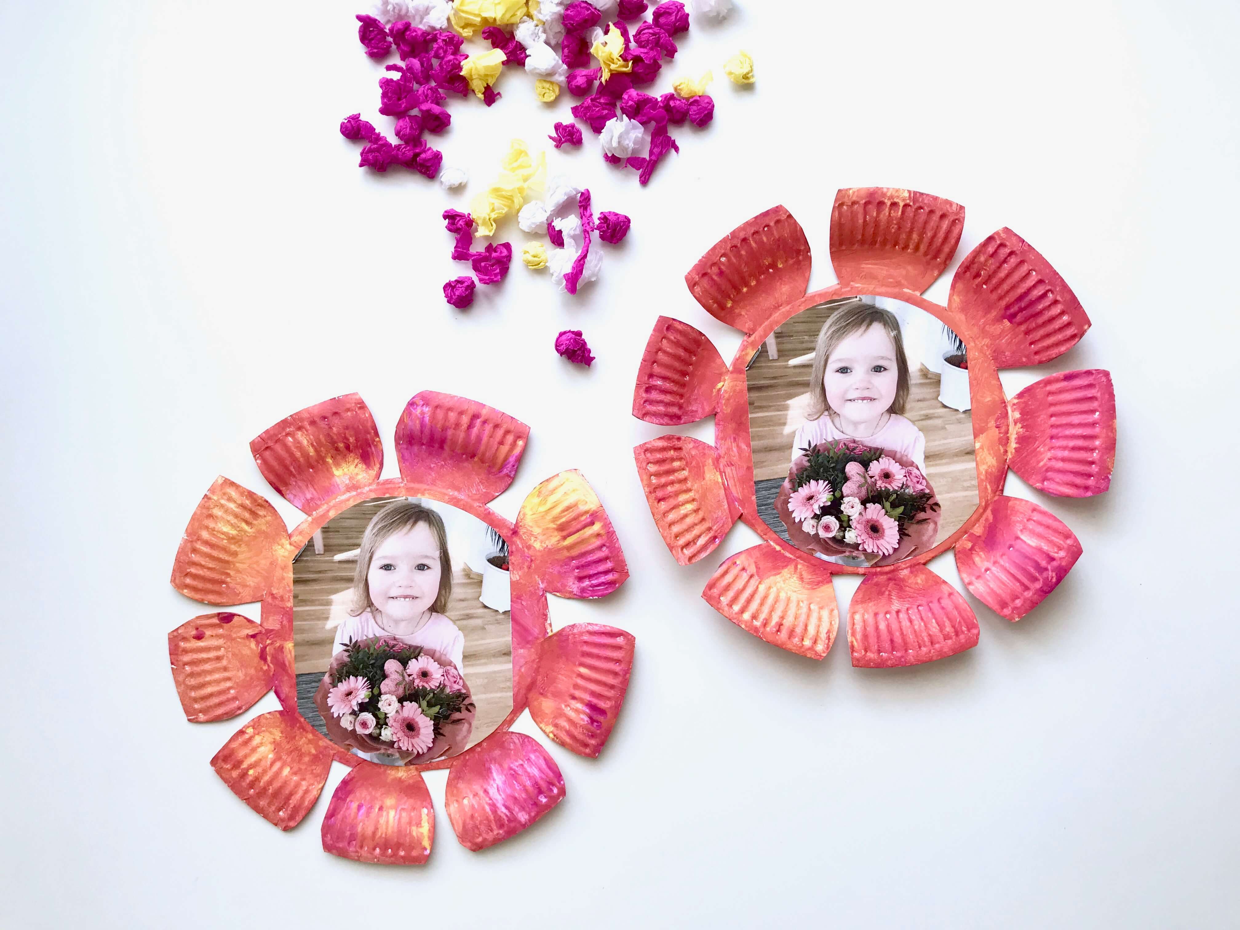 Muttertagsbastelei mit Kleinkind – Pappteller-Fotoblumen
