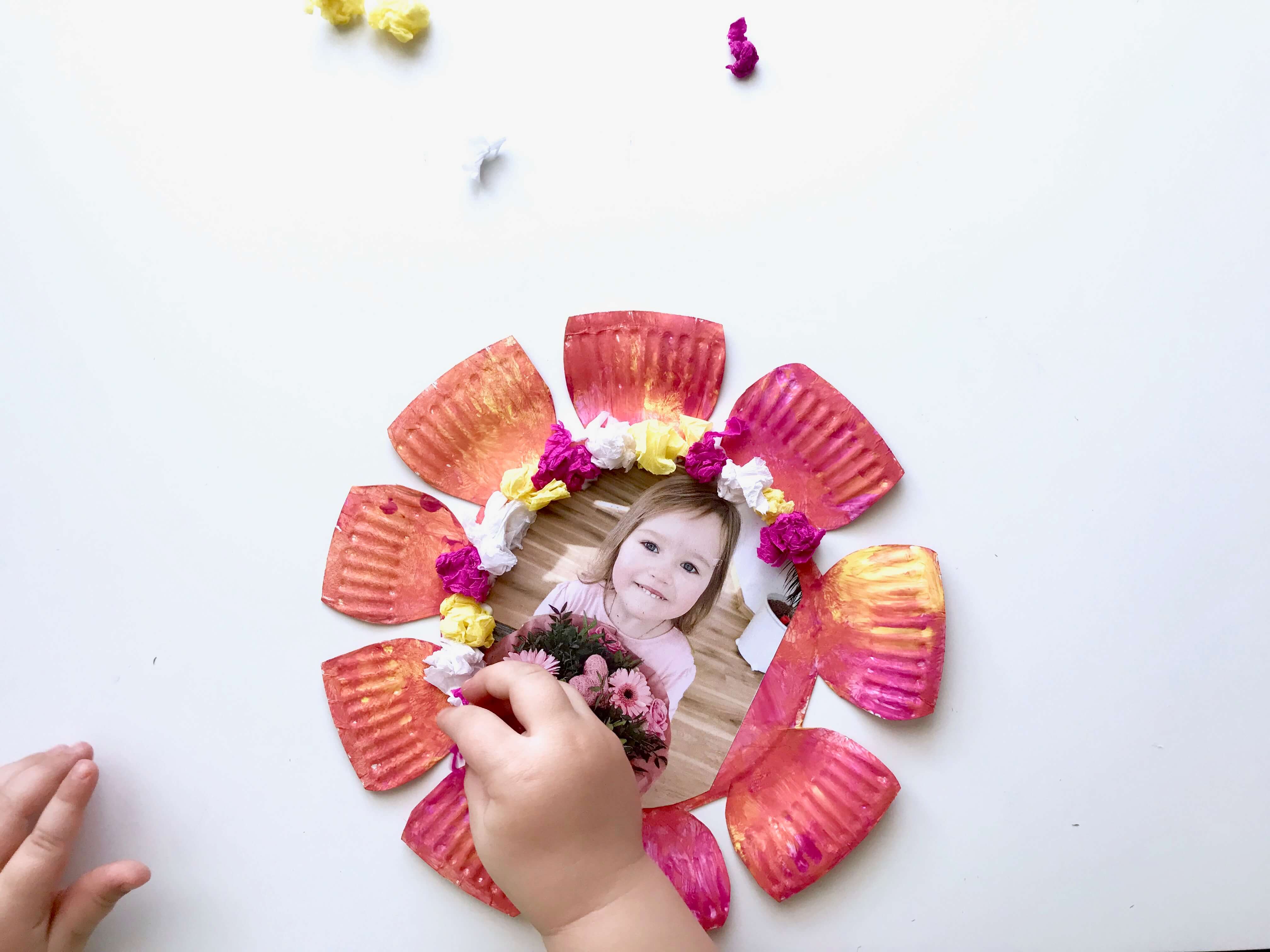 Muttertagsbastelei mit Kleinkind – Pappteller-Fotoblumen