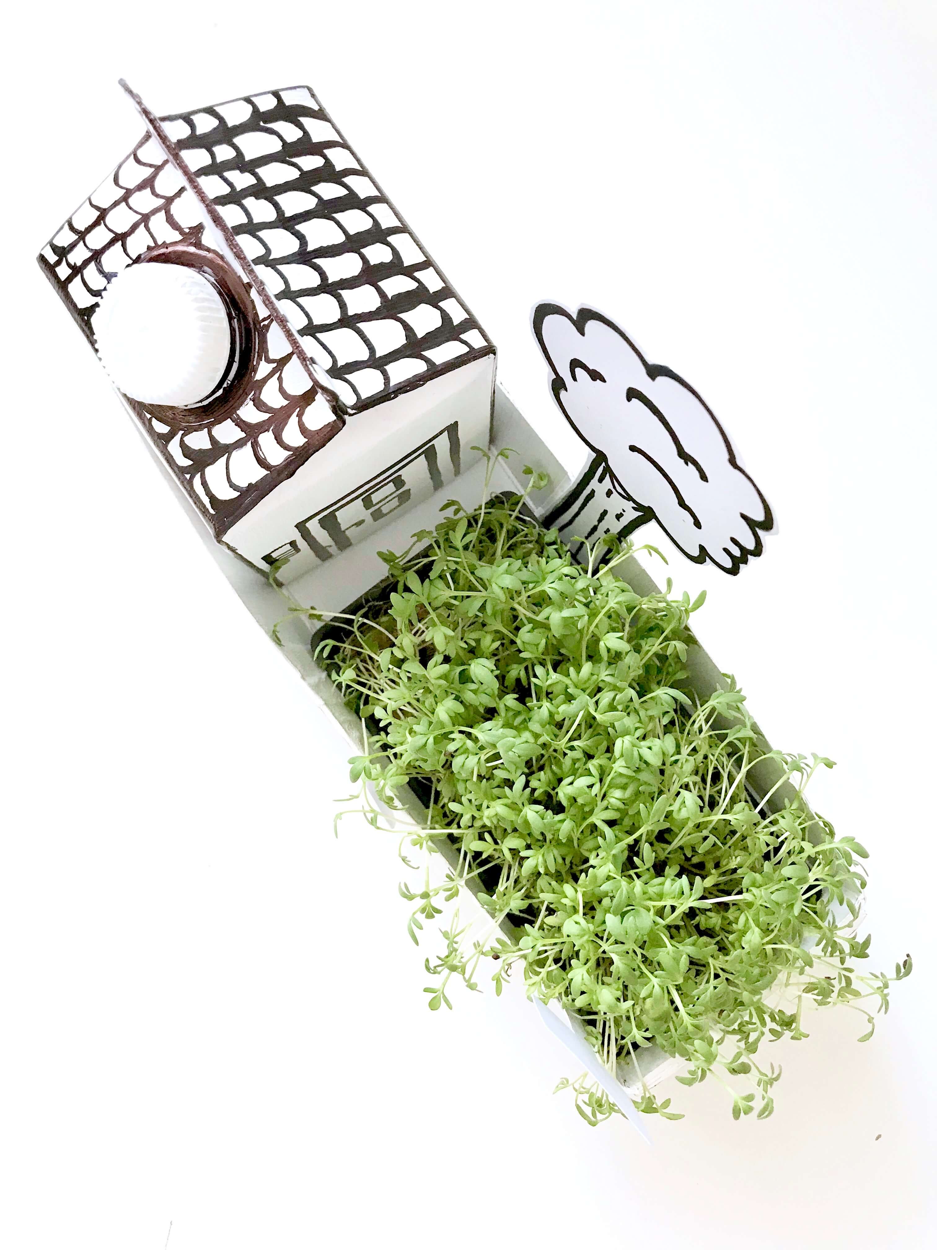 Tetrapack Upcycling: Papphaus mit Kressegarten