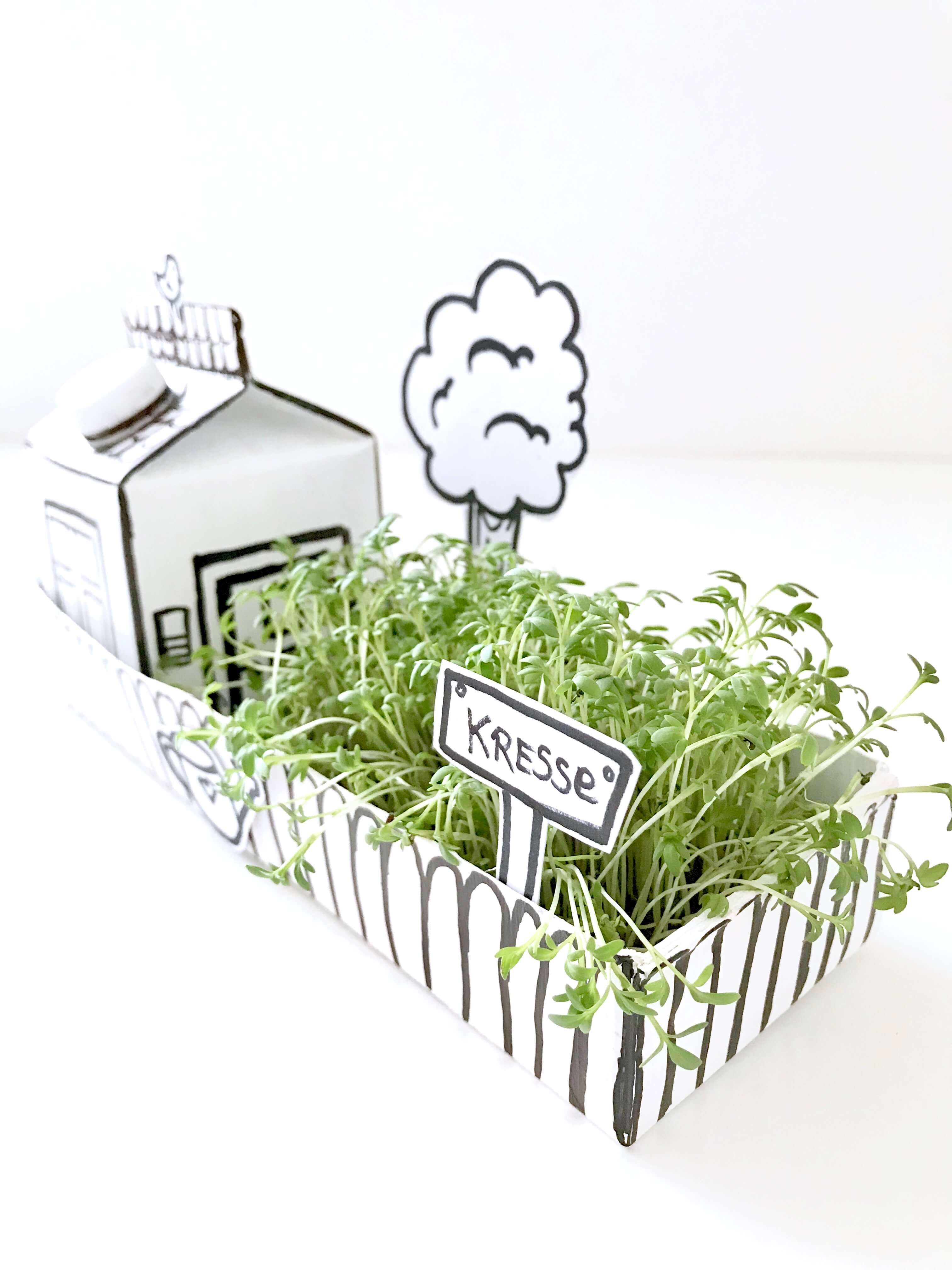 Tetrapack Upcycling: Papphaus mit Kressegarten